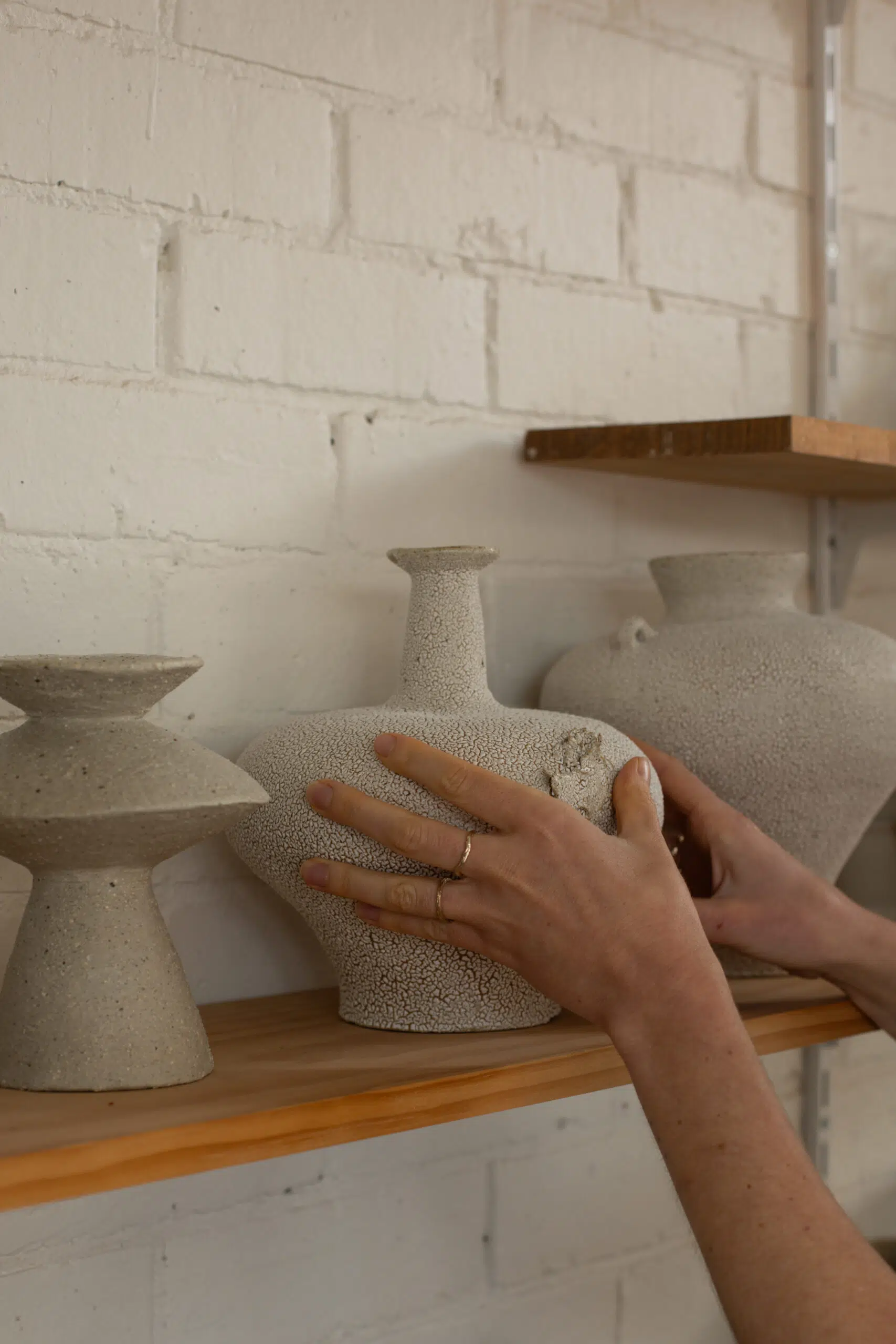 These vessels are intended to live gracefully in a space, standing alone as sculptural art objects or to be used for minimal floral arranging. All vessels internally glazed, enabling them to hold water.