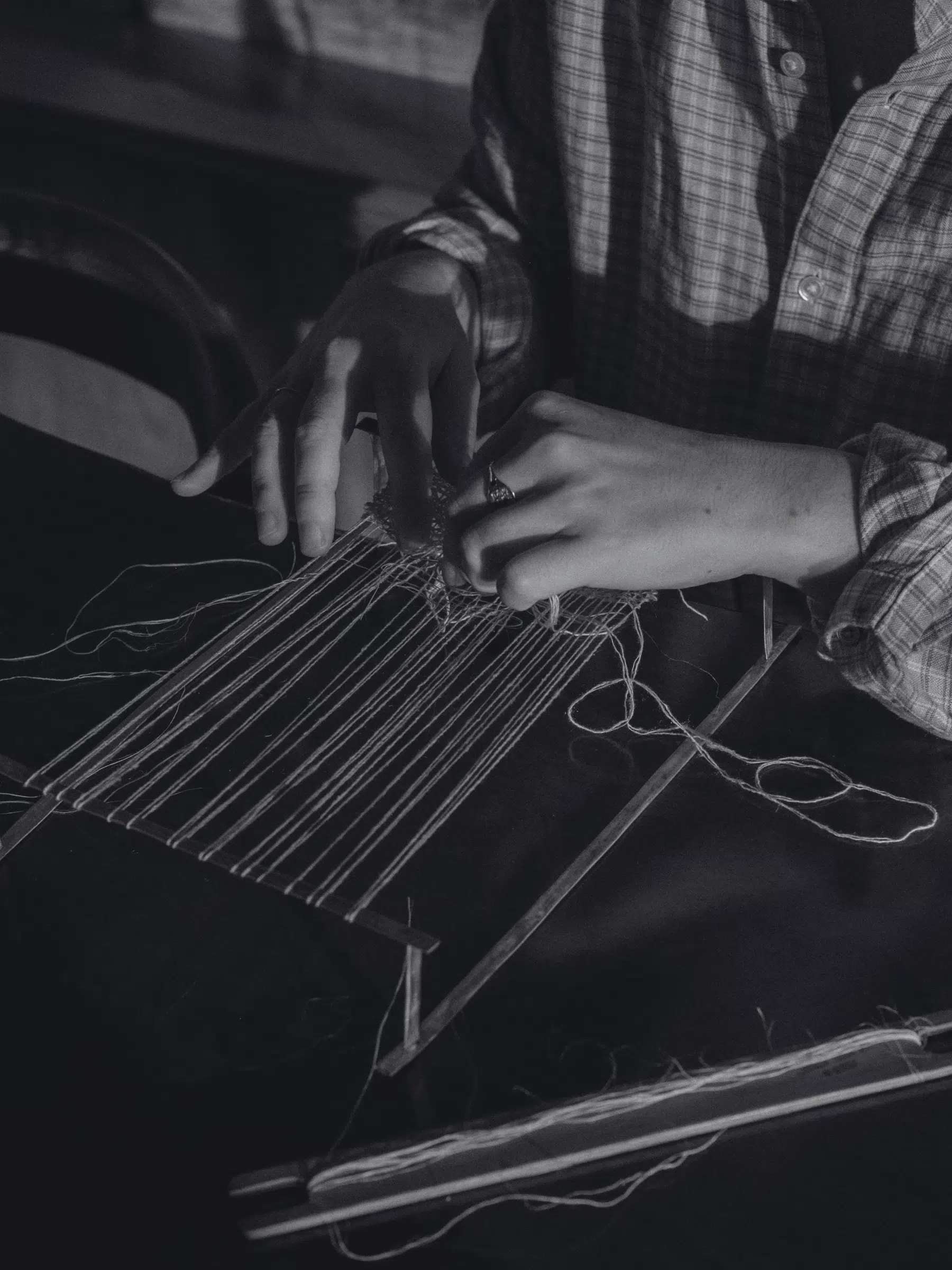 I work across a few different looms in the studio, which I was lucky enough to be gifted or traded. I often sketch out ideas, then spend the many hours required setting up the loom in preparation for weaving.